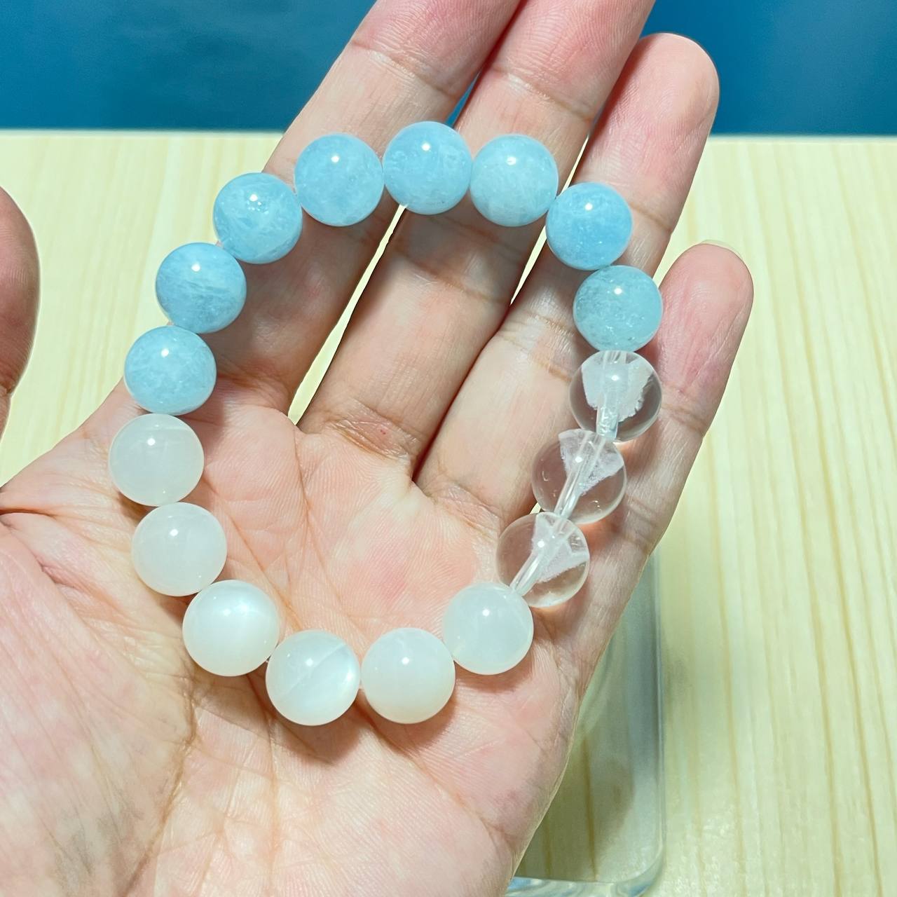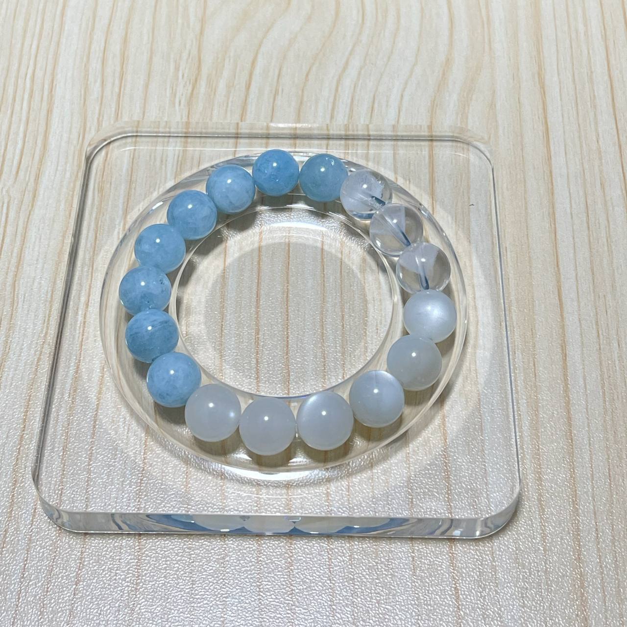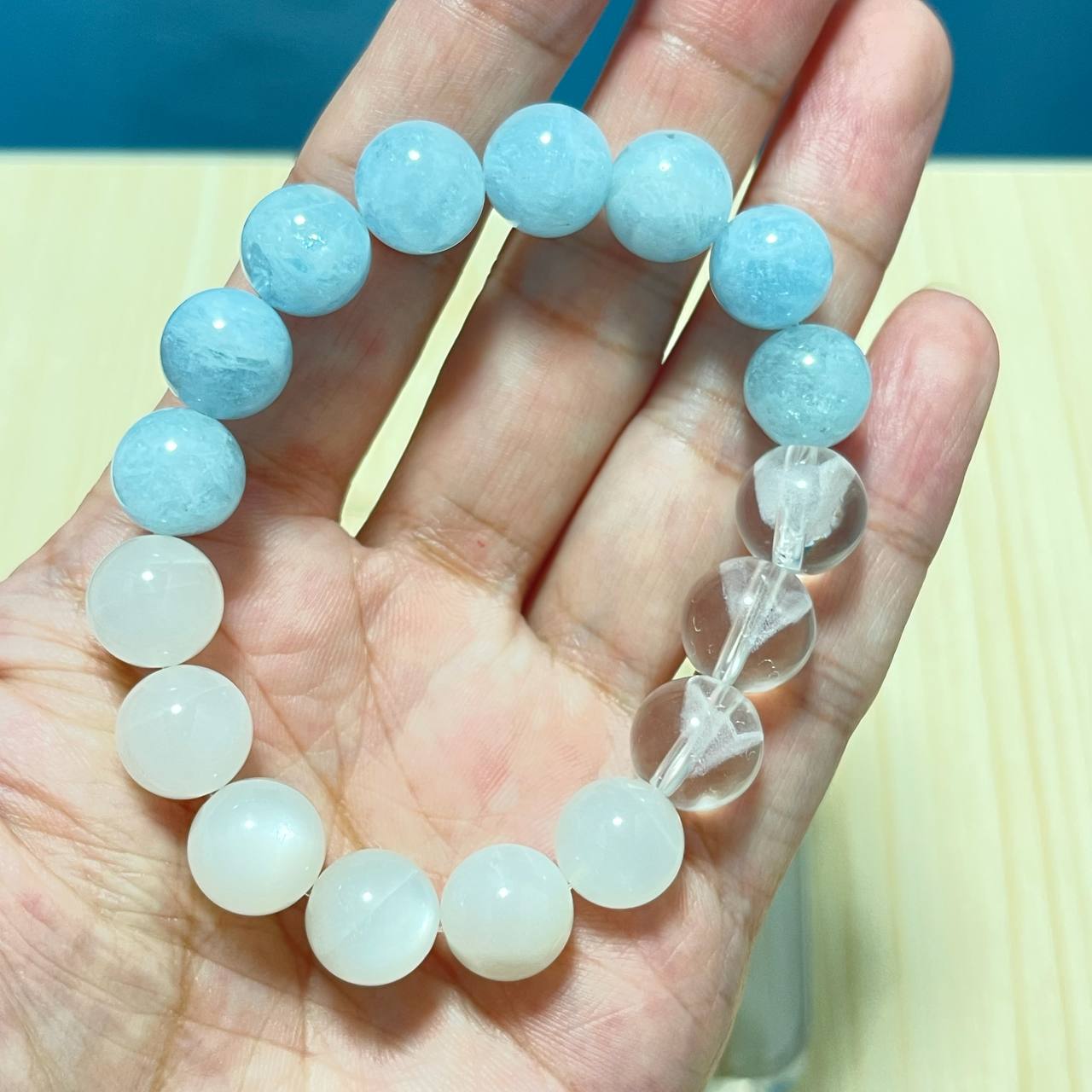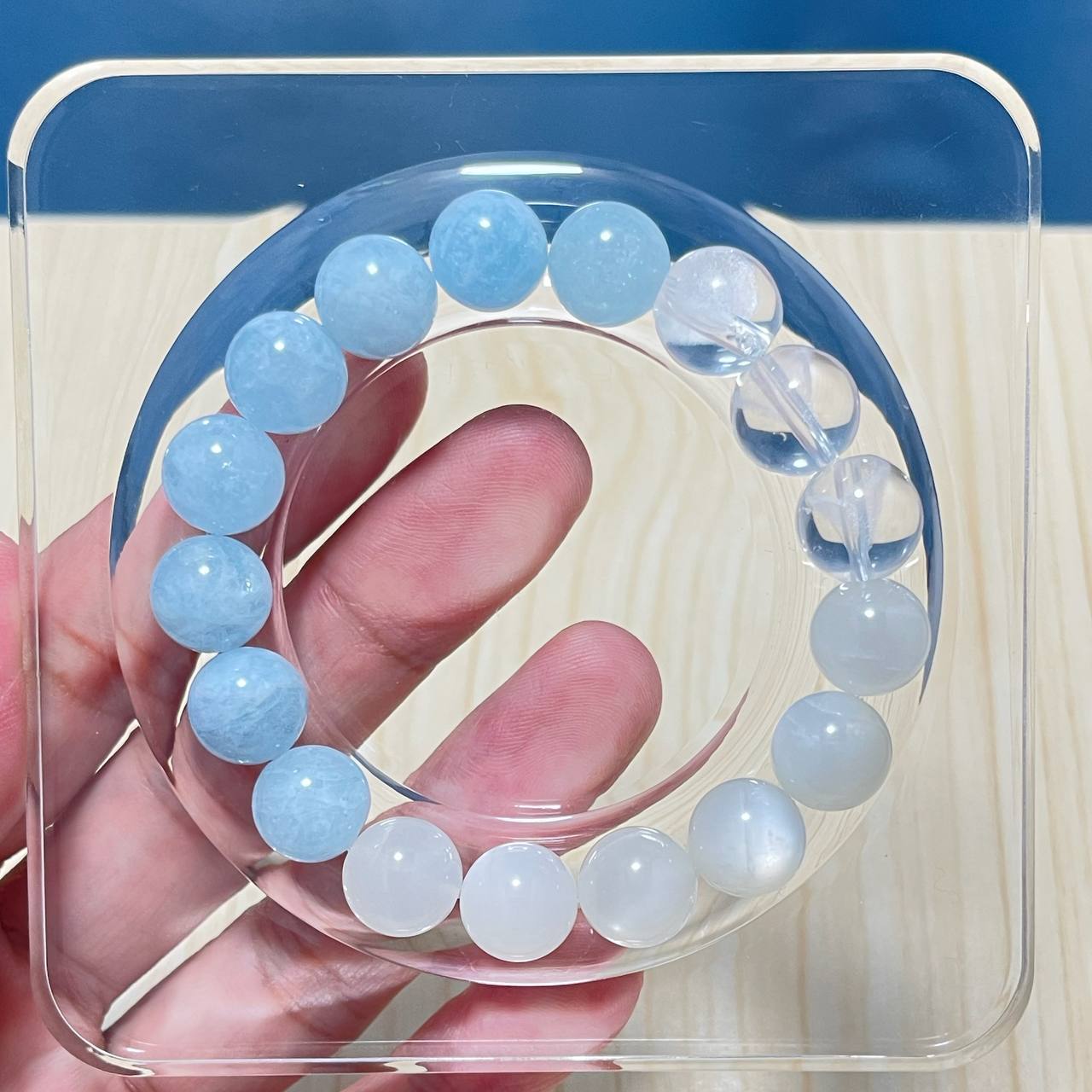 天然石ブレスレット|アクアマリン × ムーンストーン × ピラミッドクォーツ